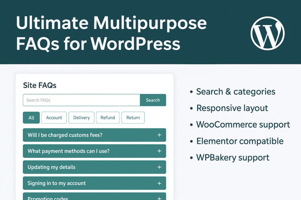 Ultimate Multipurpose FAQs for WordPress is a powerful yet user-friendly plugin designed to help you create, manage, and display Frequently Asked Questions with ease. Whether you’re running a blog, business site, WooCommerce store, or a portfolio, this plugin makes it simple to deliver instant answers to your visitors.